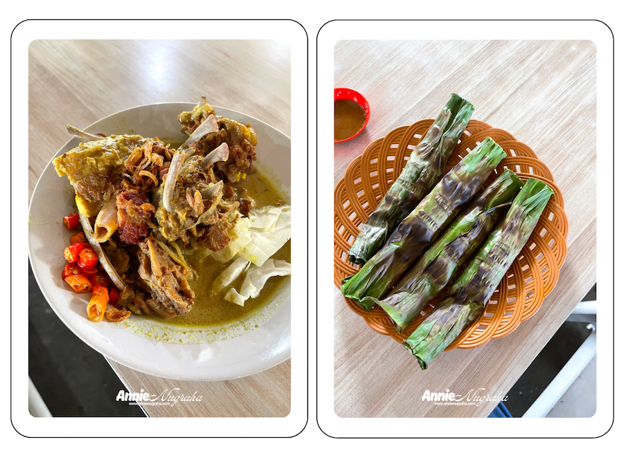 Sembari menunggu, kami melanjutkan obrolan dan menikmati beberapa potong otak-otak berbungkus daun seharga Rp25.000,00/piring isi 5. Enak juga rasanya. Lumayanlah buat nyamik-nyamik sembari menunggu pesanan datang.