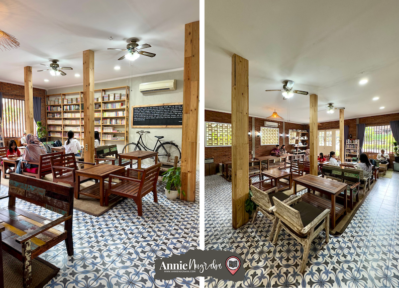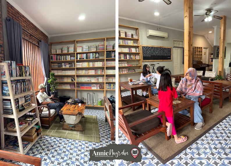 Ternyata tempatnya cukup luas dan homy, ya. Betah banget deh baca sambil ngemil di sini kayanya