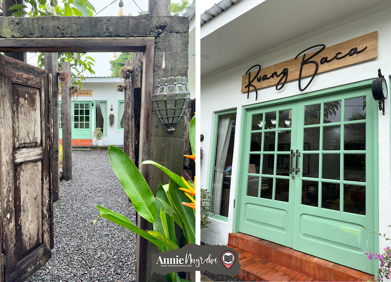 Keren banget sih tempatnya, Mbak. Apalagi jalan masuk ke ruang bacanya itu lho. Pintunya kelihatan jadul. Tapi, menarik banget.