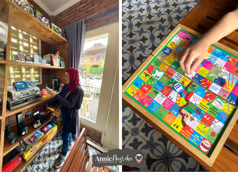 Senang sekali mampir ke book cafe yang ada board game dan printilan nostalgianya gini. Pasti ga kerasa waktu berjalan ya mbak.